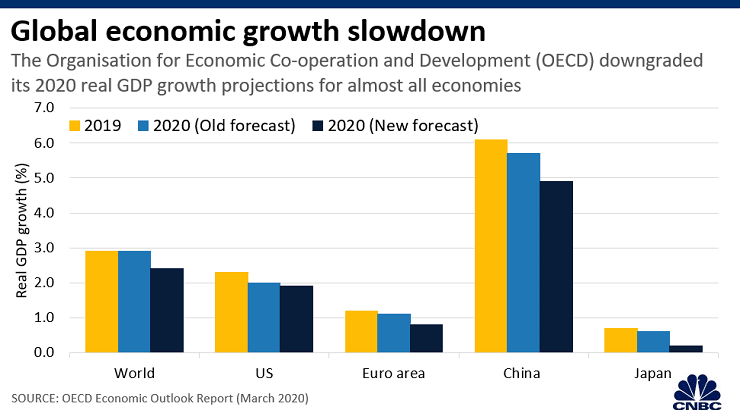 3월 보고서에서 OECD는 거의 모든 경제에 대한 2020년 성장 예측치를 하향 조정했습니다.