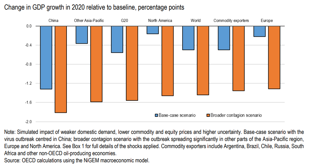 또한 무디스는 "동아시아를 통한 공급망 중단으로 인한 중국의 총 수요, 전 세계 여행 및 전 세계 공장 생산량에 대한 바이러스의 영향을 평가했다."라고 지적했습니다.